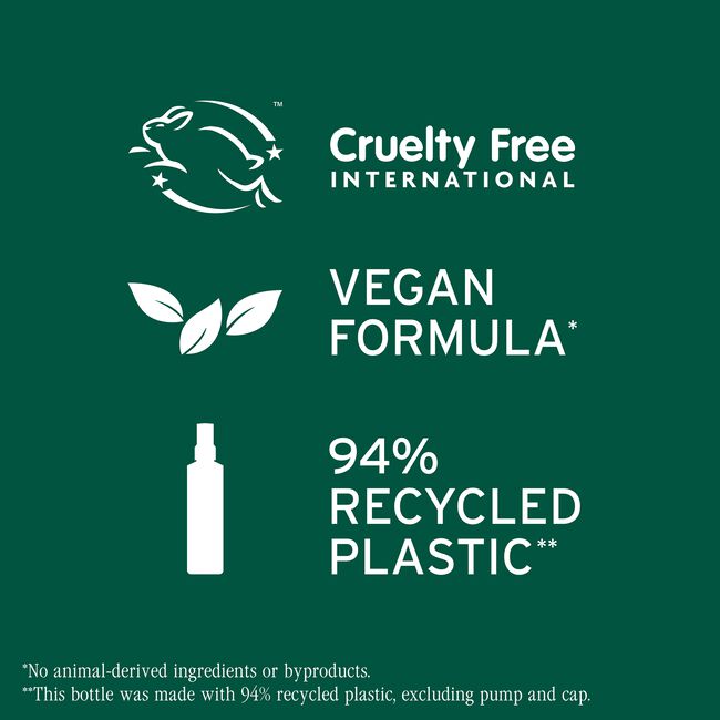 - This bottle was made with 94% recycled plastic, excluding pump and cap.